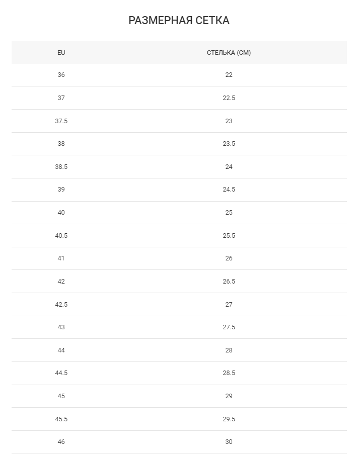 Таблица размеров
